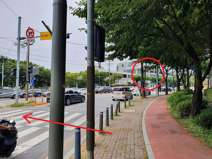 좌측 횡단보도를 통해 건너가면 됩니다.