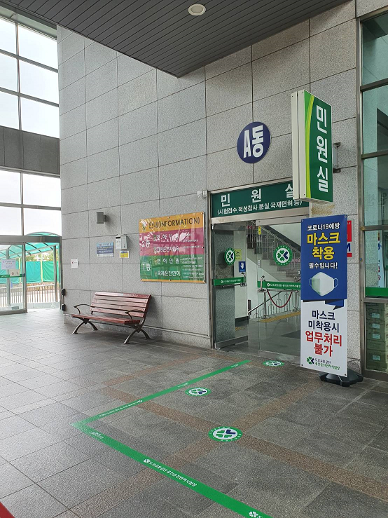 들어가면 왼쪽에는 신체검사장이 있고 오른쪽에는 민원실이 있습니다.